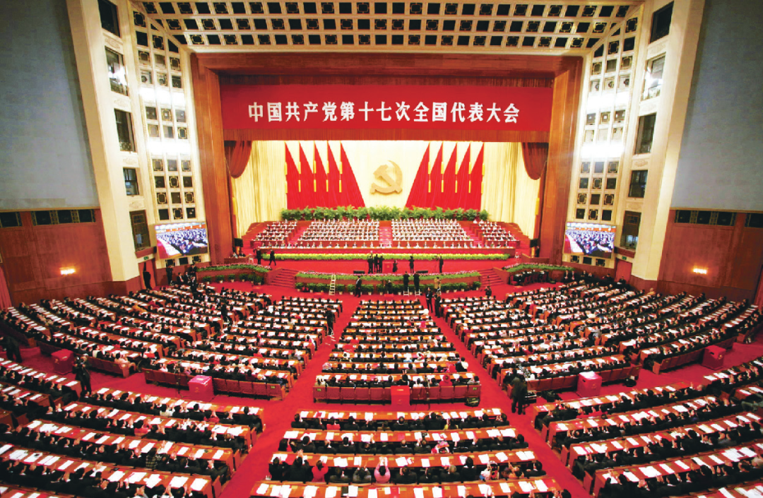 2007年10月,党的十七大召开。胡锦涛作了题为《高举中国特色社会主义伟大旗帜,为夺取全面建设小康社会新胜利而奋斗》的报告。党的十七大的重大理论贡献是创造性地提出并深刻阐述了中国特色社会主义理论体系。