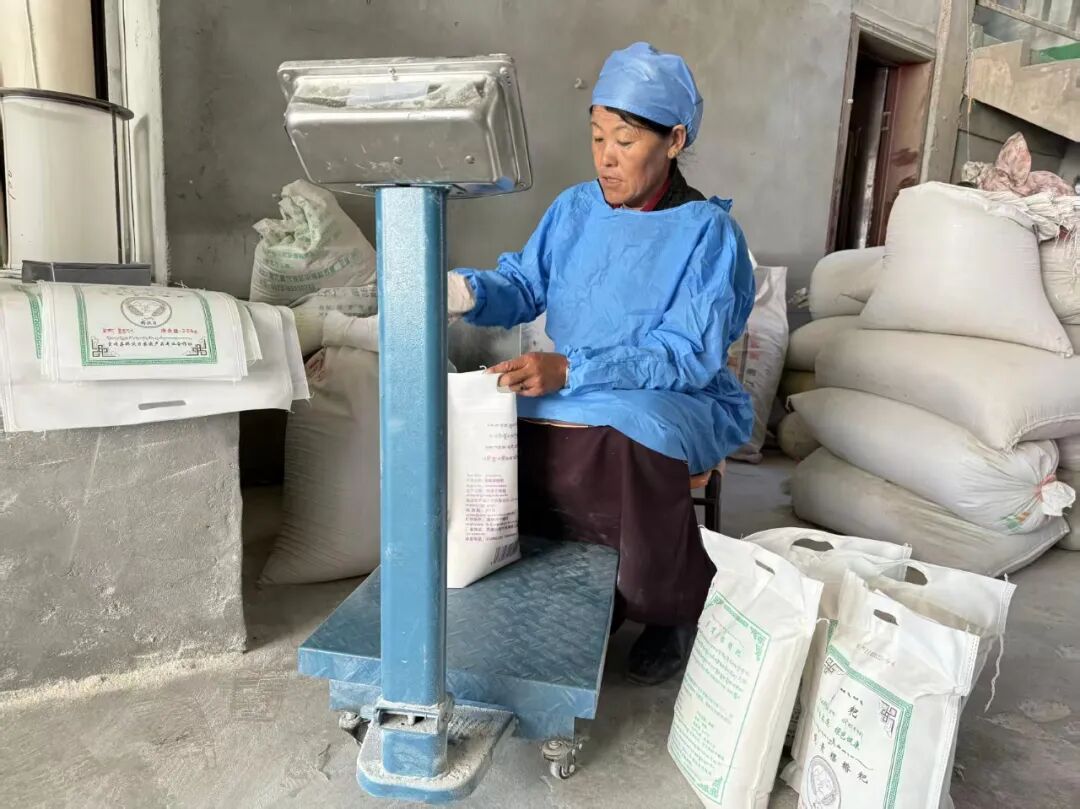 日子好了,拉珍没忘了身边的乡亲。2022年,她牵头办起了“桥沃日农牧民专业合作社”,专门吸纳贫困户妇女和家里有大学生的家庭,7名社员跟着她一起加工糌粑、饲料,一年能挣10万多元。这些年,她还自掏腰包近1万元,走访慰问了10多名困境妇女,把温暖送到了最需要的人身边。