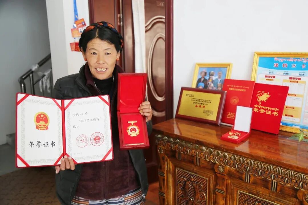 功夫不负有心人!没过多久,拉珍就还清了贷款,还主动申请退出建档立卡贫困户。从贫困户到自主创业的带头人,拉珍的故事在当地传开了,自治区脱贫攻坚奋进奖、自治区劳动模范、全国劳模……一个个荣誉接踵而至,但她总说:“奖不奖的不重要,重要的是家人过上了好日子,日子有奔头。”