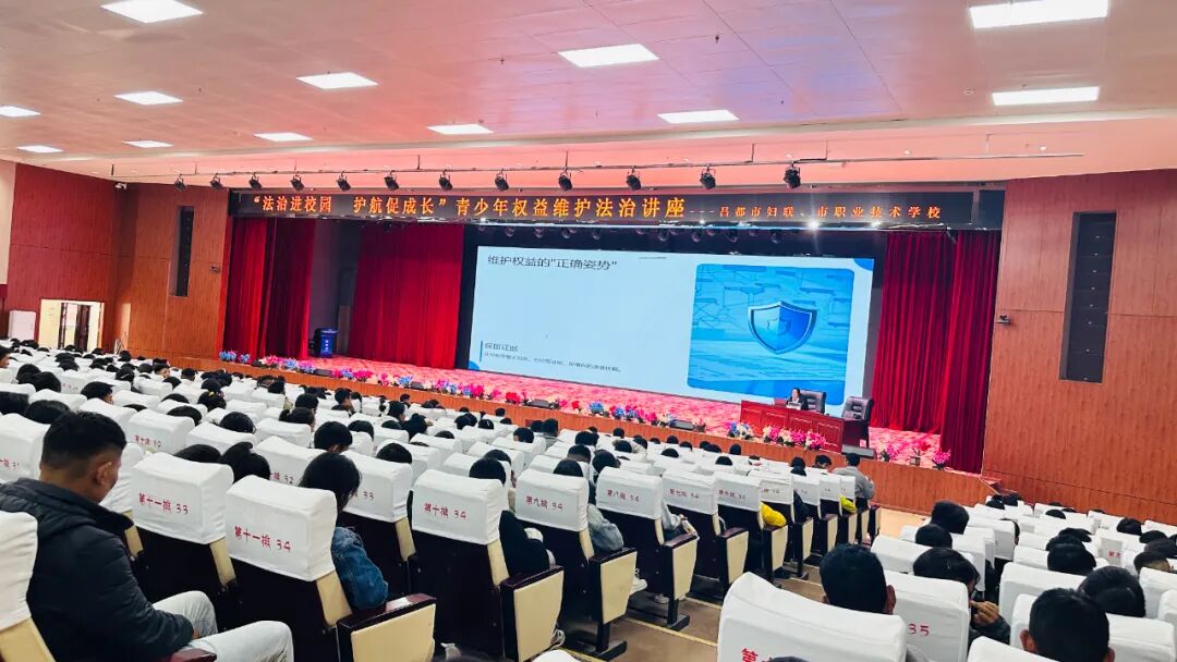 为深入贯彻落实党的二十大和二十届三中全会精神,持续深入推进未成年人保护工作,切实增强在校学生的法治意识和自我保护能力,10月20日,市妇联以“法治进校园 护航促成长”为主题,在市职业技术学校(第二职校)针对2025级新生开展青少年权益维护法治讲座进校园活动,全校1100余名学生参加。