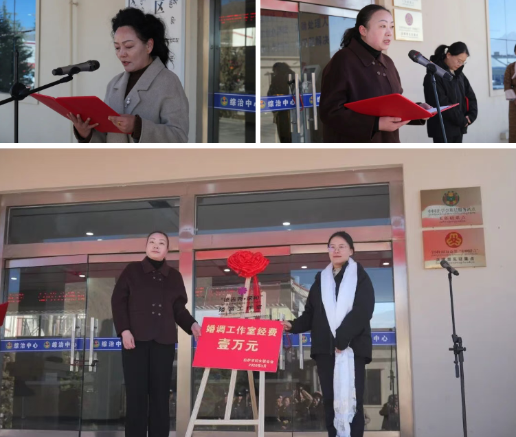 仪式上,与会领导共同为“德吉秀·家和”婚姻家庭纠纷调解工作室授牌,并为城关区、堆龙德庆区婚调工作室发放工作经费1万元,共计2万元。标志着本地婚姻家庭矛盾纠纷调解品牌化、专业化、规范化工作正式启动。同时,引入律师、心理咨询师、退休法官等专业力量,提供“法律咨询+心理疏导+矛盾调解+跟踪回访”全链条一站式服务。并打造可复制、可推广的婚调工作品牌,后续将逐步在全市乃至全区范围内推广落地,切实发挥品牌示范引领作用。