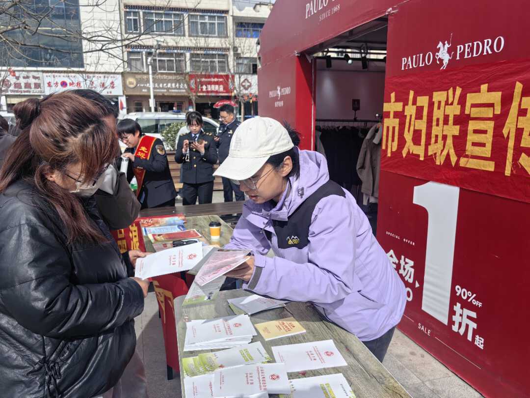 活动现场巾帼志愿者用通俗易懂的语言,向过往群众讲解守法赋予公民的权利和义务,普及婚姻家庭、邻里纠纷等民法典核心内容,解读反有组织犯罪法相关规定,揭露黑恶势力违法犯罪危害,引导群众守好自身“钱袋子”。
