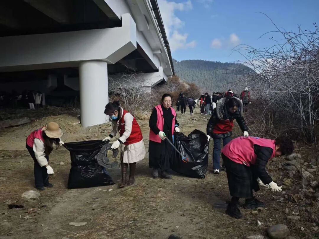 为充分发挥巾帼力量在城乡环境整治的“半边天”作用,积极传承弘扬雷锋精神,共建美丽和谐城市,3月10日上午,林芝市妇联组织行业领域巾帼志愿者、市直部分单位妇委会(女工委)女干部职工200余人,在306省道西藏天禾啤酒有限公司附近集中开展环境整治志愿服务活动。巾帼志愿者们准时集结,手持扫帚、垃圾夹等清洁工具,对道路两侧及高架桥底部、尼洋河沿边等卫生死角,进行全面清理和规整。