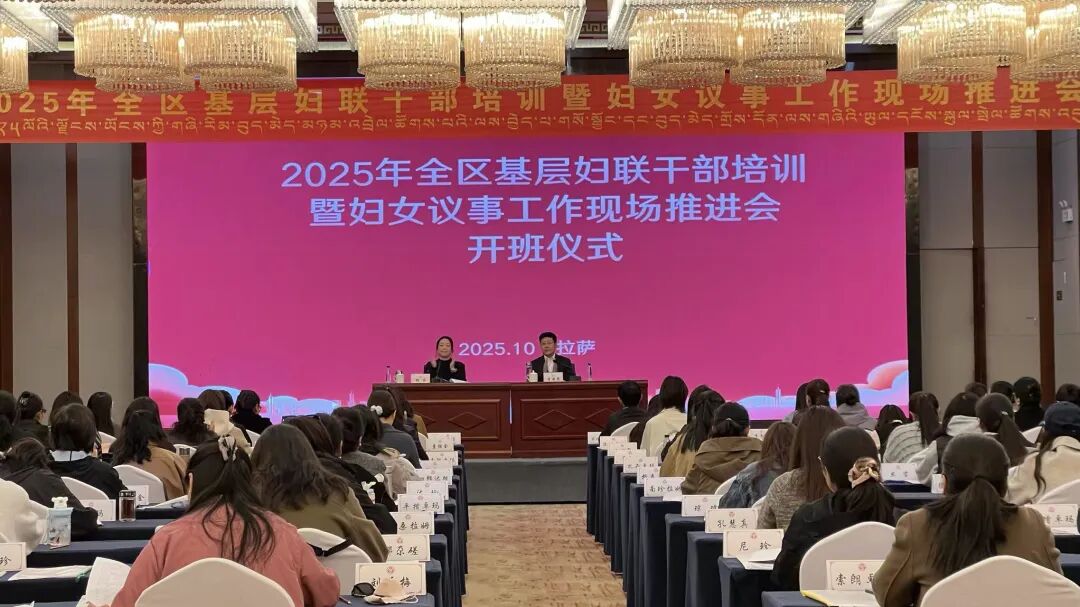 在全区上下深入学习贯彻习近平总书记视察西藏时的重要讲话精神,全面建设社会主义现代化新西藏的关键时期,为深入学习贯彻党的二十大和二十届二中、三中全会精神,学习贯彻习近平总书记关于妇女儿童和妇联工作的重要论述,学习贯彻习近平总书记关于西藏工作的重要指示和新时代党的治藏方略及十届区党委历次全会,切实提升基层妇联干部的综合素质、履职能力和服务妇女儿童的水平,推动妇联工作高质量发展,自治区妇联于10月12日—18日在拉萨举办2025年全区基层妇联干部培训暨妇女议事工作现场推进会。自治区妇联党组成员李国英出席开班仪式并讲话。七市(地)妇联、74县(区)妇联主席和妇联业务骨干共计90人参加。