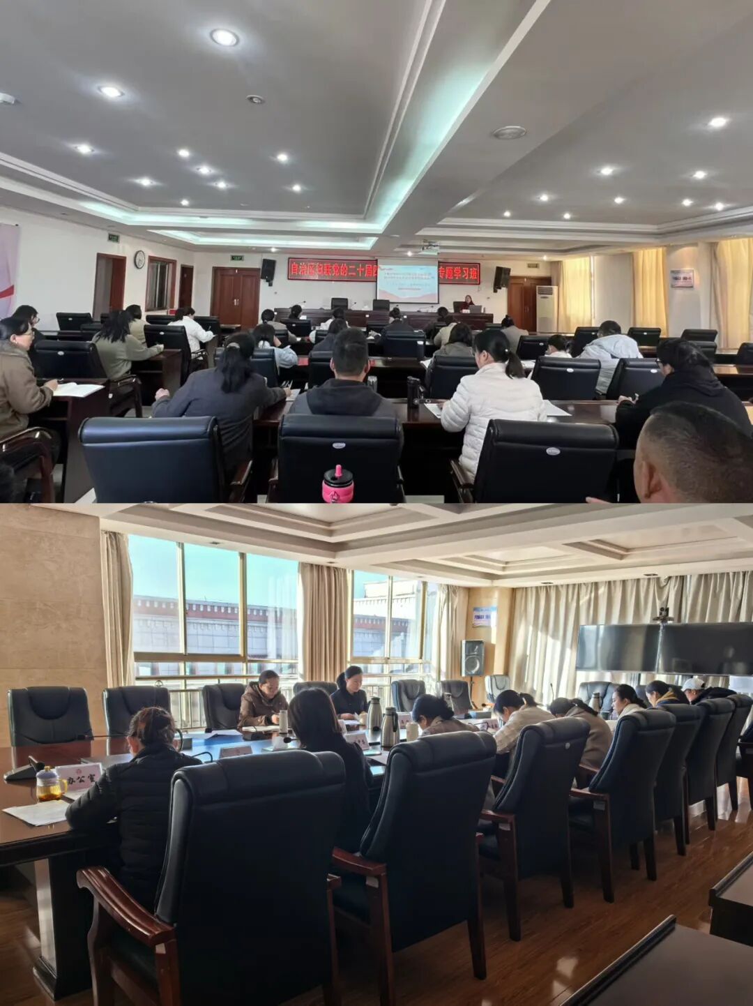 会前,大家围绕习近平总书记在党的二十届四中全会上的重要讲话和《中共中央关于制定国民经济和社会发展第十五个五年规划的建议》《中国共产党第二十届中央委员会第四次全体会议公报》等认真开展自学。19日下午,邀请自治区宣讲团成员、西藏大学马克思主义学院教授曾燕作《不断开创以中国式现代化全面推进强国建设和民族复兴伟业的新局面》专题授课。讲座中,曾燕教授从“党的二十届四中全会的重大意义与核心成果”“十四五与十五五规划核心对比”“‘十五五’时期经济社会发展的关键任务”“从规划演进看经济前景与民生影响”4个方面对党的二十届四中全会精神进行了全面系统、深入浅出的讲解。她在讲座中表示,党的二十届四中全会是在我国向第二个百年奋斗目标进军的新征程上举行的一次十分重要的会议,要全面完整准确贯彻落实党的二十届四中全会精神,在基本实现社会主义现代化进程中书写西藏华章、贡献西藏力量。