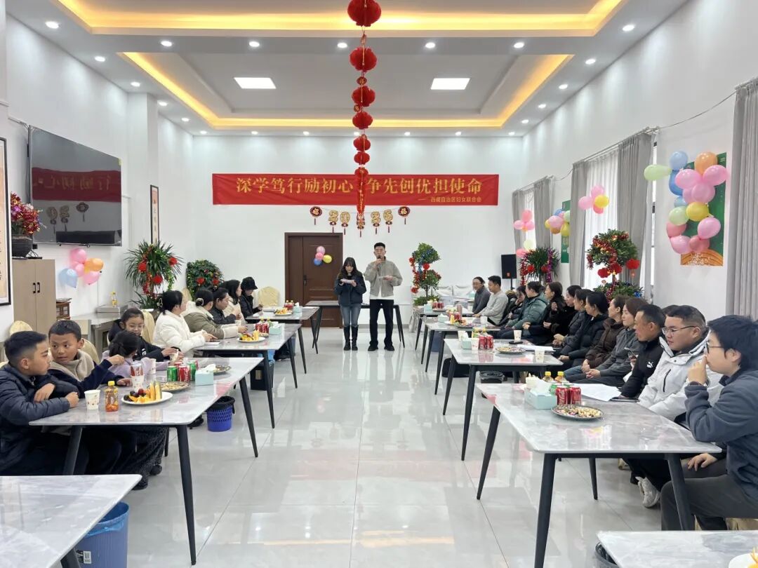 为深入学习宣传贯彻党的二十届四中全会和区党委十届九次全会精神,扎实推进学习型机关建设,激励自治区妇联机关干部职工担当作为,12月30日,自治区妇联机关党委、机关妇委会、机关工会联合后勤服务中心开展“巾帼迎新春 践行新思想”知识竞赛暨迎新年过传统节日主题党日活动。全体干部职工欢聚一堂,共庆新年。