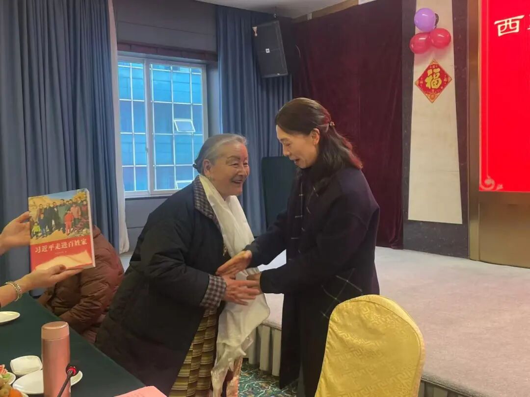 活动中,谢英代表自治区妇联党组向老同志们致以节日问候,并敬献哈达、发放慰问金、赠送《习近平走进百姓家》书籍。她结合自治区发展成就,回顾了妇女儿童事业的历史性进步,强调当前妇女儿童事业在健康、教育、权益保护、家庭文明建设等领域取得的显著成效,离不开老同志们打下的坚实基础与长期奉献。