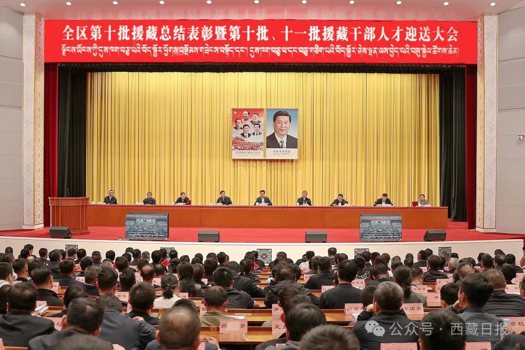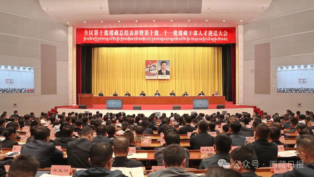 会议表彰了第十批援藏先进集体和个人。第十批、第十一批援藏干部人才代表作了交流发言。
