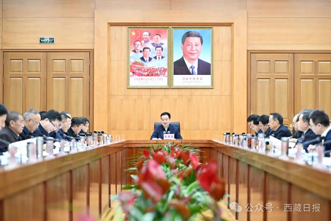 王君正强调,要弘扬理论联系实际的学风,坚定不移抓好党中央各项决策部署落实,推动长治久安和高质量发展不断取得新成效。持之以恒贯彻落实习近平总书记关于西藏工作的重要指示,完整准确全面贯彻新时代党的治藏方略,认真贯彻落实习近平总书记视察西藏时的重要讲话精神,切实用以武装头脑、指导实践、推动工作,确保西藏“十五五”时期经济社会发展目标任务落实落地。统筹发展和安全,始终把维护稳定作为第一位的政治任务,时刻绷紧维护稳定这根弦,警钟长鸣、警惕常在,做到未雨绸缪、防患于未然,不断提升社会治理体系和治理能力现代化水平,着力巩固团结稳定的政治和社会局面。坚定不移贯彻新发展理念,因地制宜发展新质生产力,培育壮大新兴产业,积极发展特色优势产业,着力构建现代化产业体系,从实际出发推动高质量发展。加强生态文明建设,把保护好生态作为最大价值、最大责任、最大潜力,坚持生态优先、保护第一,科学开展国土绿化行动,积极推进南北山绿化工程,不断筑牢国家生态安全屏障。坚持屯兵和安民并举、固边和兴边并重,不断提高基本公共服务水平,加快推进边境地区现代化建设,确保边疆发展、边防巩固、边境安全。