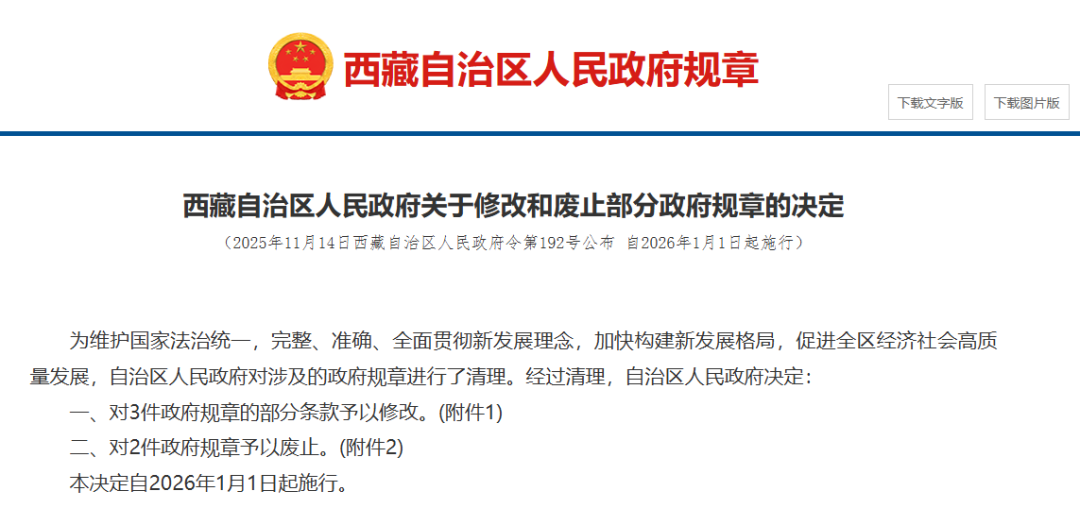 西藏自治区人民政府最新决定!